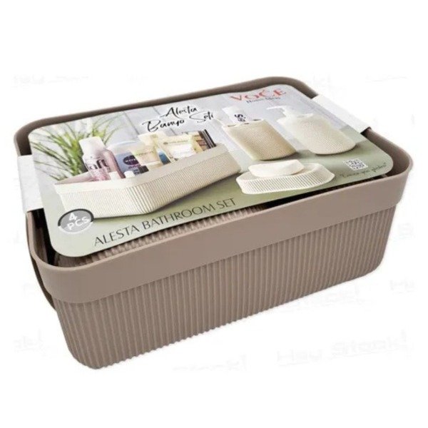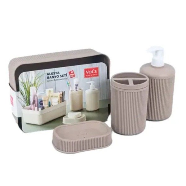 Contiene 4 piezas : Dispenser de jabón, Jabonera, Vaso , Vaso para cepillos de dientes.